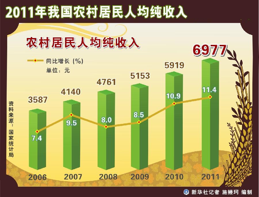 活动三:示例:2011年我国农村居民人均纯收入增长11.4%。