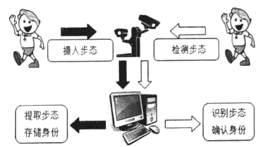 (2)示例:运用的是步态识别技术。它的工作原理是:首先,步态识别系统摄入步态和相应的身份信息;然后,系统提取步态特征并存储到步态数据库;当系统再次检测到相同步态的时候,便会从数据库中找出对应的信息,进而确认身份。(4分)