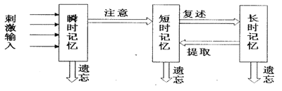 下图是记忆的三级信息加工模式图。请根据图示,对图中的三种记