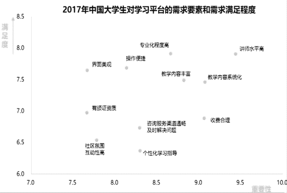 下图是关于“2017年中国大学生对网络学习平台的需求要素和需求