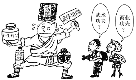 观察下面一幅针对某寺庙公开拍卖活动的漫画,请用100字左右说明