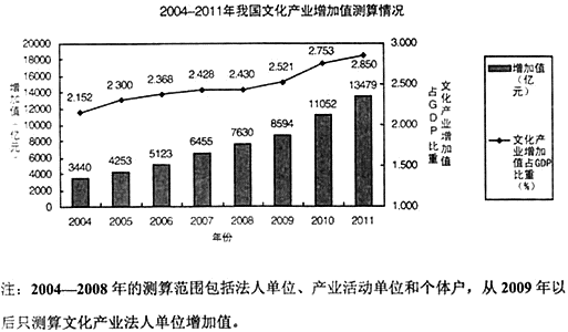 下图是2004年至2011年我国文化产业增加值测算情况统计表。请你读
