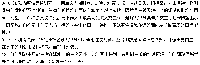10.环礁能形成“环状”,有哪几个方面的原因?请根据相关文段加以概括。(3分)