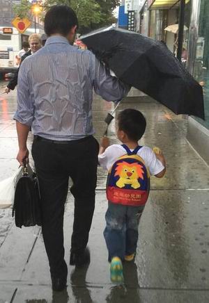 据台湾东森新闻云网9月12日报道,美国纽约皇后区的马路上,一位父亲为孩子打着伞,自己的后背却被雨水淋透了。这一幕被网友拍到,随后照片在网络相簿Imgur被疯传,短短13小时感动全球超过250万人。