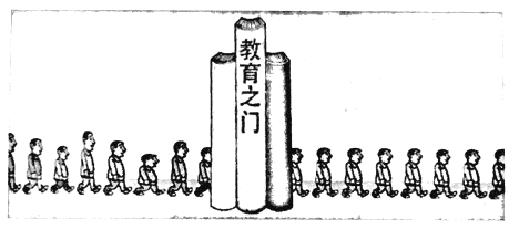 用简明的话概括下面漫画的寓意,不超过50字。教育之门