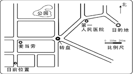 假如你的朋友要从下图左下角所示的“目前位置”开车到右上角所示
