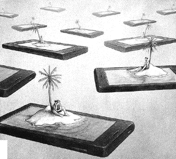 随着智能手机的普及,人们的生活在发生变化……根据这幅漫画拟写