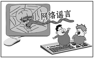 请描述漫画的画面内容,100字以内。并写出感受或启示。网络谣言