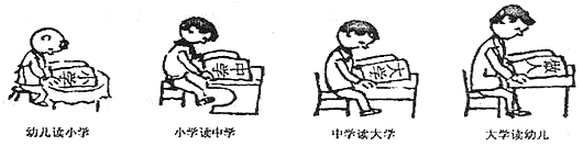 写出漫画的寓意:幼儿读小学 小学读中学 中学读大学 大学读幼儿