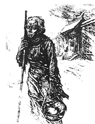 下图是鲁迅小说《祝福》的插图。请为这一幅画拟写一则解说词,