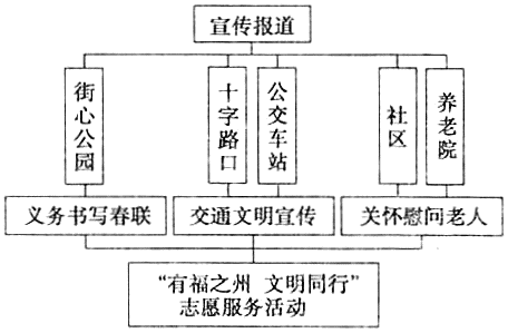 21.下面是福州市教育系统“有福之州·文明同行”志愿服务活动的活动构思框架,请把这个构思写成一段话,要求内容完整,表述准确,语言连贯,不超过85个字。(6分)