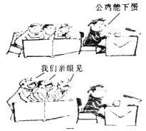 阅读下面的漫画“公鸡能下蛋”,根据要求回答问题。