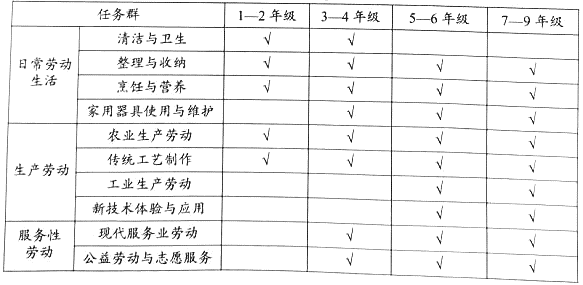 《新课标》中劳动课程内容共设置十个任务群(见下表)。根据课程