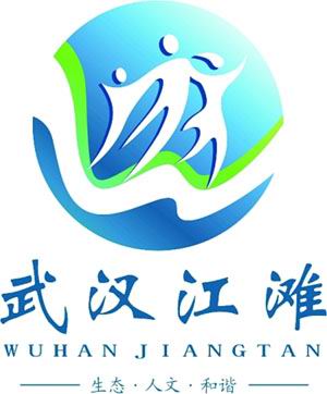 下面是武汉江滩标志图,请写出该标志除汉字与字母以外的构图要素
