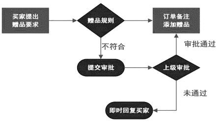 下面是某电商客服部门的赠品审核流程图,请把这个图转写成一段文