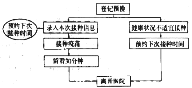 下图是某医院门诊儿童接种流程图,请依据本图内容,将整个流程写