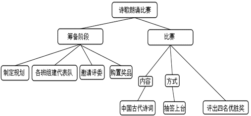 21.下面是某校园举办诗歌朗诵比赛的构思,请把这个构思写成一段话,要求内容完整,表述准确,语言连贯,不超过80个字。
