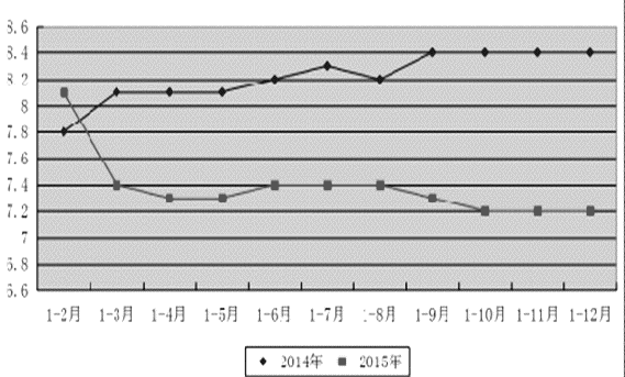 图表1 2014、2015年广东规模以上工业增加值累计增长(﹪)图表2