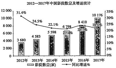 A.从图1和图2可以看出,2012﹣2017年我国影院数与银幕数不断增加,虽增长率有所波动,但数量上均持递增趋势。