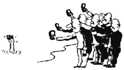 观察下面的漫画,用简洁的语言介绍画面内容,并概括漫画的寓意。