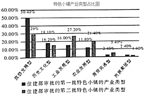 C.在住建部公布的第二批特色小镇的产业类型中,工业发展型和农业服务型的占比均有较大幅度的增长,商贸流通型与民族聚居型依然不太受青睐。