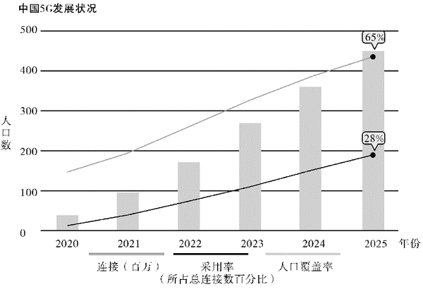 C.预计2020~2025年,我国5G人口覆盖率与采用率将持续增长,到2025年底,我国5G连接数量将达到4.6亿,位列全球第一。