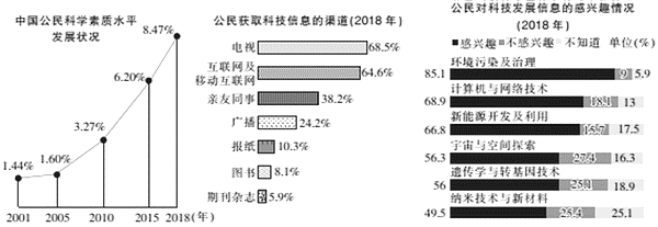 A.我国具备科学素质的公众比例2018年已达到8.47%,提高公众科学素质水平是我国建设创新型国家不可或缺的。