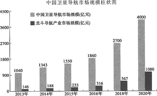 D.我国北斗导航产业市场在2013年时规模较小,仅146亿元,到2018年,市场规模翻了接近两番,预计2020年可达到1080亿元。