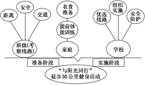 下图是某校“与阳光同行”徒步30公里健身活动的构思框架,请把这